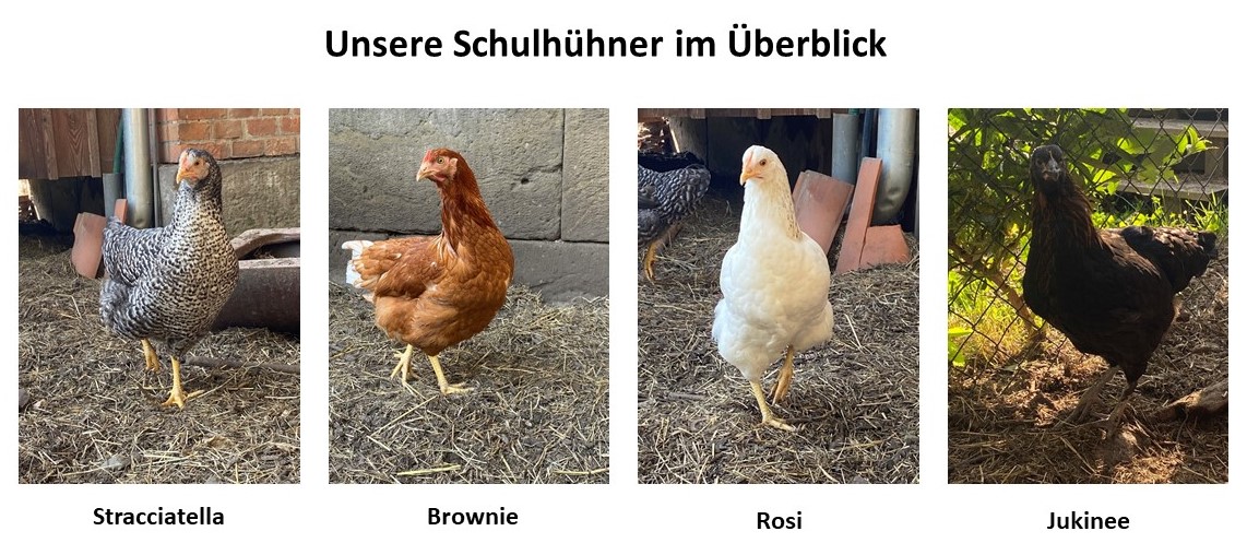 Unsere Schulhühner haben sich inzwischen richtig gut eingelebt! Jeden Morgen werden sie von fleißigen Schüler*innen versorgt – frisches Wasser, neues Futter und das tägliche Einsammeln der Eier gehören natürlich dazu. Auch das Saubermachen des Stalls steht regelmäßig auf dem Plan. Besonders spannend ist es, das Verhalten der Hühner zu beobachten – sie scharren, picken und genießen die Sonne in ihrem Auslauf. Damit es unseren Hühnern weiterhin so gut geht, bitten wir alle aus der Schulgemeinschaft: Bitte nicht füttern und nicht ins Gehege gehen! Die Tiere bekommen alles, was sie brauchen, und zu viel Futter kann ihnen sogar schaden. Übrigens: Die frischen Eier unserer Schulhühner können auch käuflich erworben werden! Bei Interesse oder wenn ihr im Hühnerteam mitarbeiten möchtet, meldet euch gerne bei Frau Malik. Gemeinsam sorgen wir dafür, dass unsere Schulhühner sich weiterhin rundum wohlfühlen! 🐔