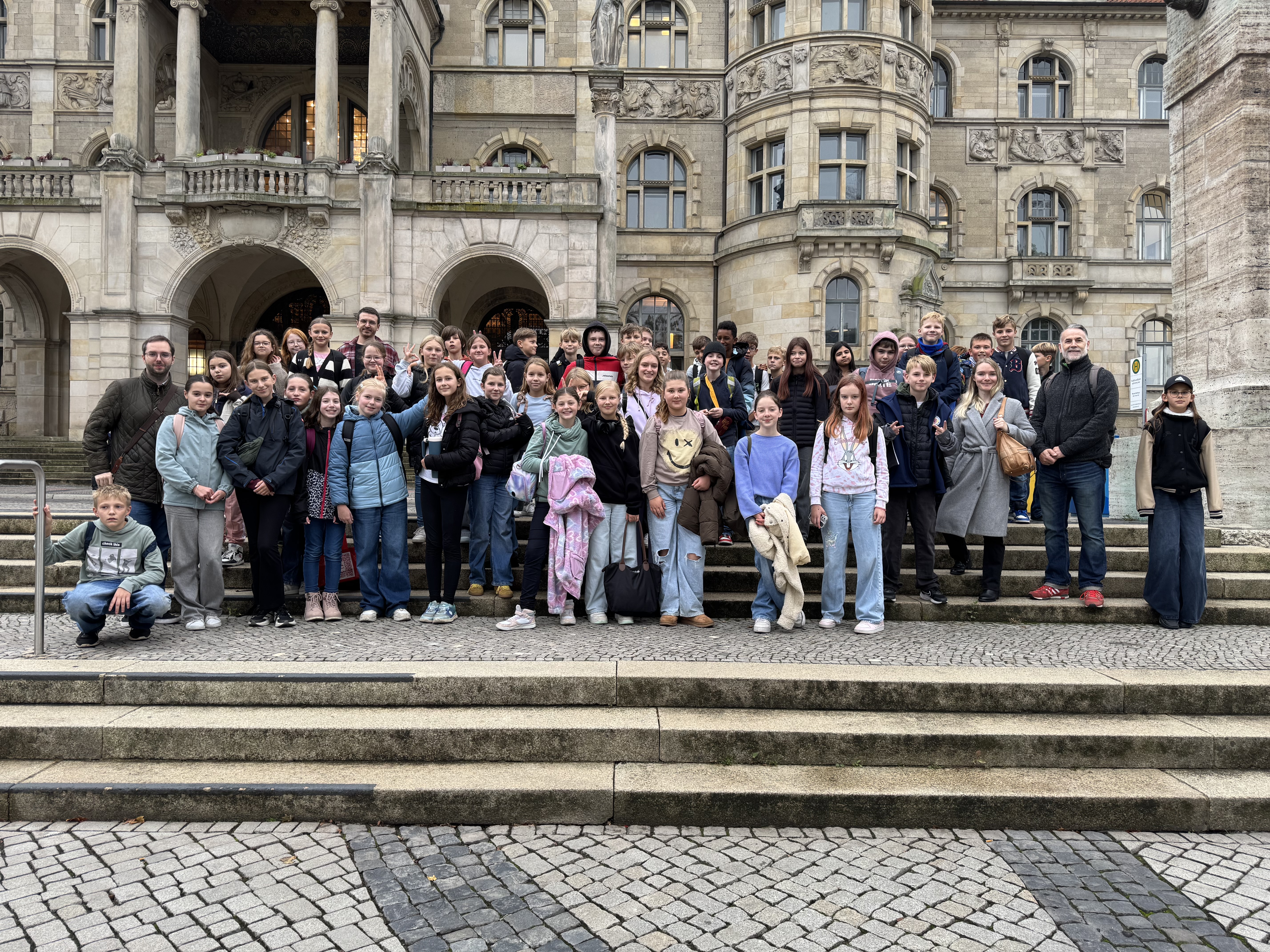 Unsere Tour begann an der alten Synagoge in der Harzstraße 12. Dort haben wir erfahren, wie wichtig sie früher für die jüdische Gemeinde war und was während der Pogromnacht 1938 geschah. Danach ging es weiter zum jüdischen Mahnmal, das an die Opfer der NS-Zeit erinnert, und anschließend zur neuen Synagoge, die heute wieder als Gebetsort genutzt wird. Wir besuchten außerdem die Samson-Schule, eine ehemalige jüdische Schule und zum Abschluss den jüdischen Friedhof, auf dem noch viele alte Grabsteine zu sehen sind.