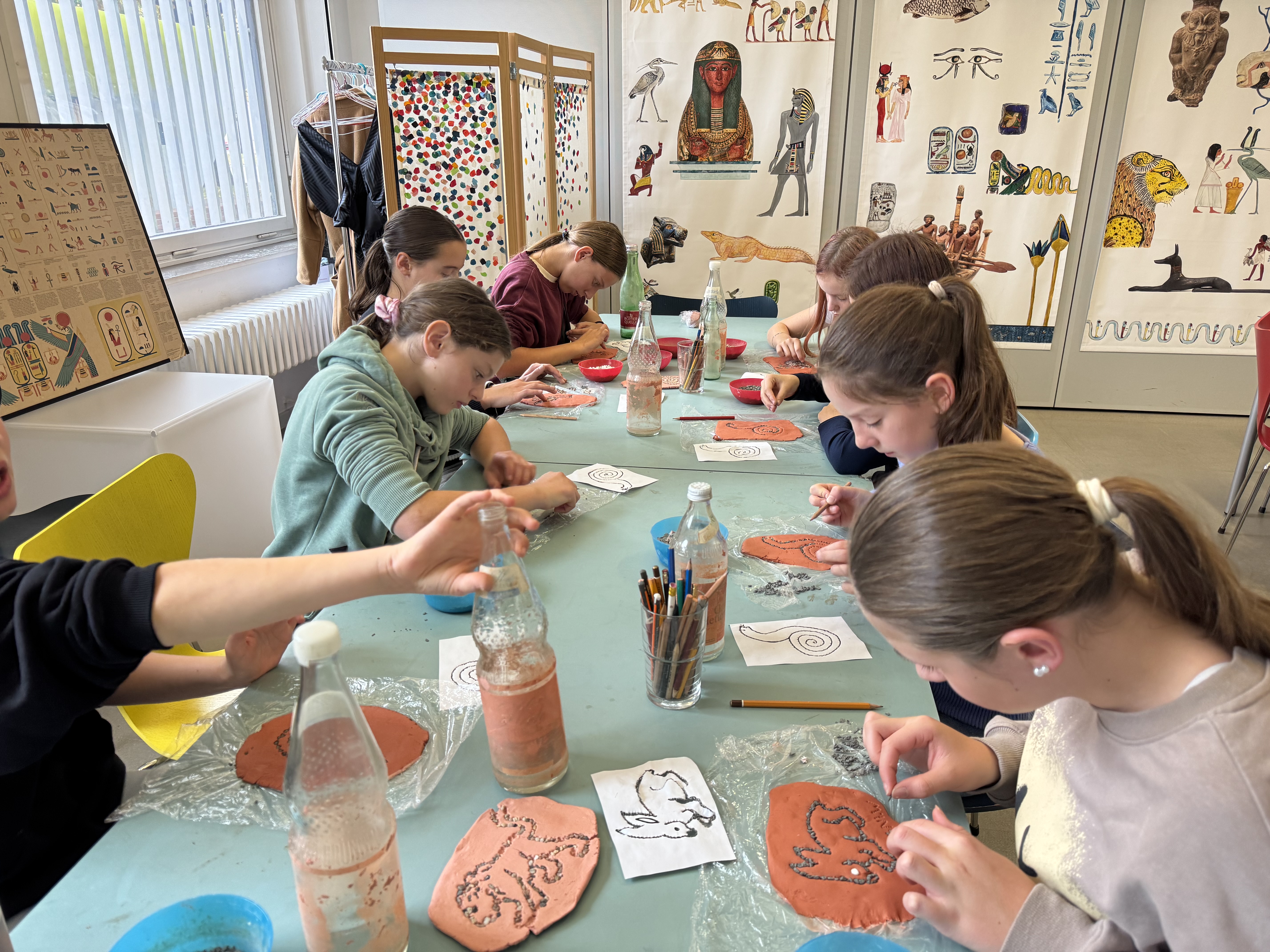 In der Projektwoche des 6. Jahrgangs ging es um das Thema Rom. Wir waren im August-Kestner-Museum in Hannover. Dort haben wir einen Workshop zum Thema Mosaik gemacht. Als wir den Workshop gemacht haben, wurde uns eine Geschichte über Orpheus erzählt. Wir konnten uns verschiedene Tiermotive und Mosaike selber machen.