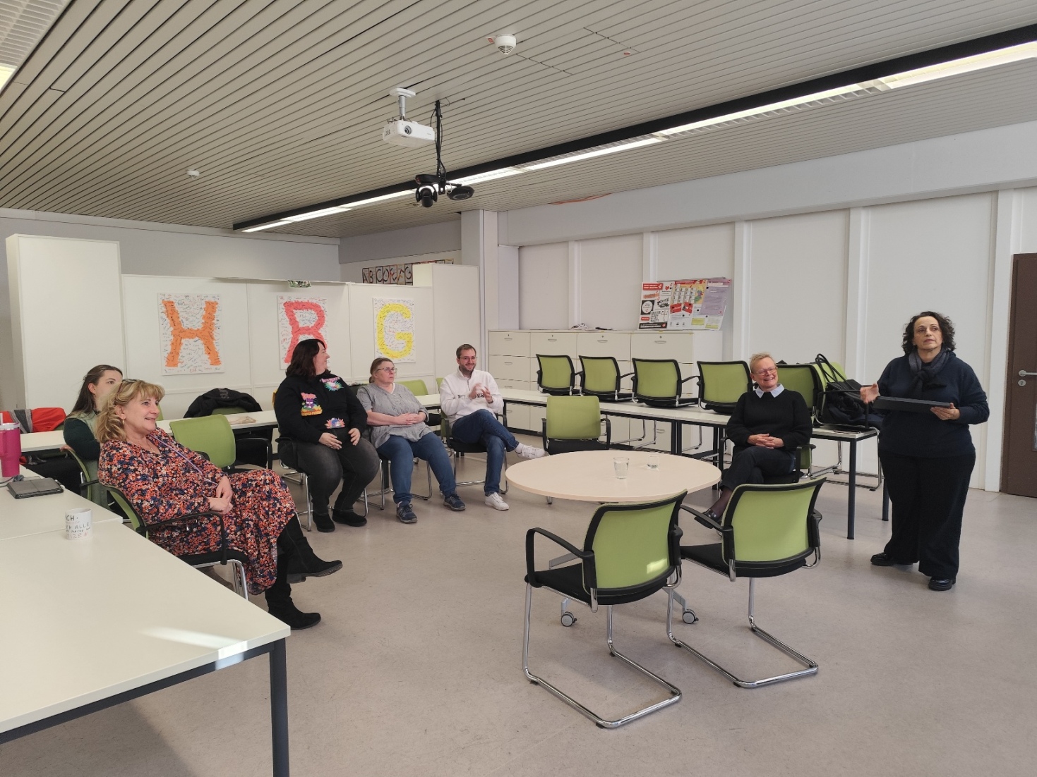 Am Montag stellten die beiden Lehrkräfte einem interessierten Kollegium zudem ihre europäischen Austauschaktivitäten vor. In einem lebendigen Gespräch – auf Französisch, Deutsch und Englisch – erhielten wir Einblicke in Erasmus-Plus-Projekte sowie internationale Kooperationen ihrer Schule, die bis nach Finnland und sogar Grönland reichen.