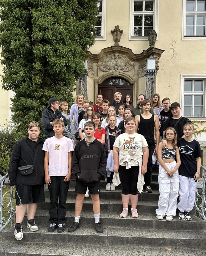 10 Schüler:innen der Jahrgangsstufe 7 reisten zusammen mit Frau Schulz und Herrn Dauert nach Polen, um eine Gruppe der "Szkoła Podstawowa Nr. 5 im Krzysztofa Kamila Baczyńskiego" aus Piaseczno, bei Warszawa zu treffen.