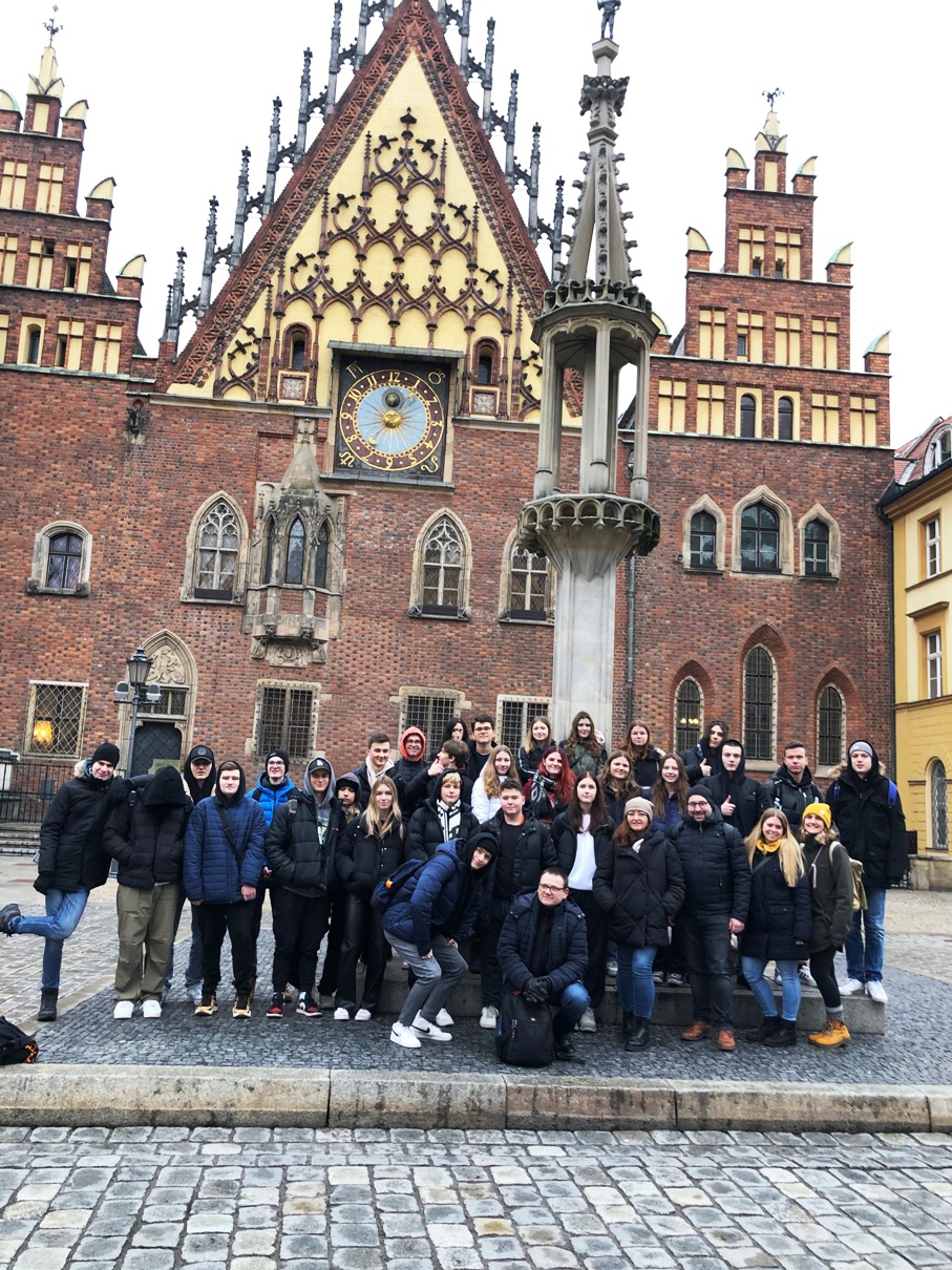 13 Schüler:innen der Jahrgangsstufe 11 reisten zusammen mit Frau Kretzschmar, Frau Lokaj und Herrn Dauert nach Polen, um eine Gruppe der "Zespół Szkół Techniczno – Ekonomicznych" aus Skawina, bei Krakòw zu treffen.