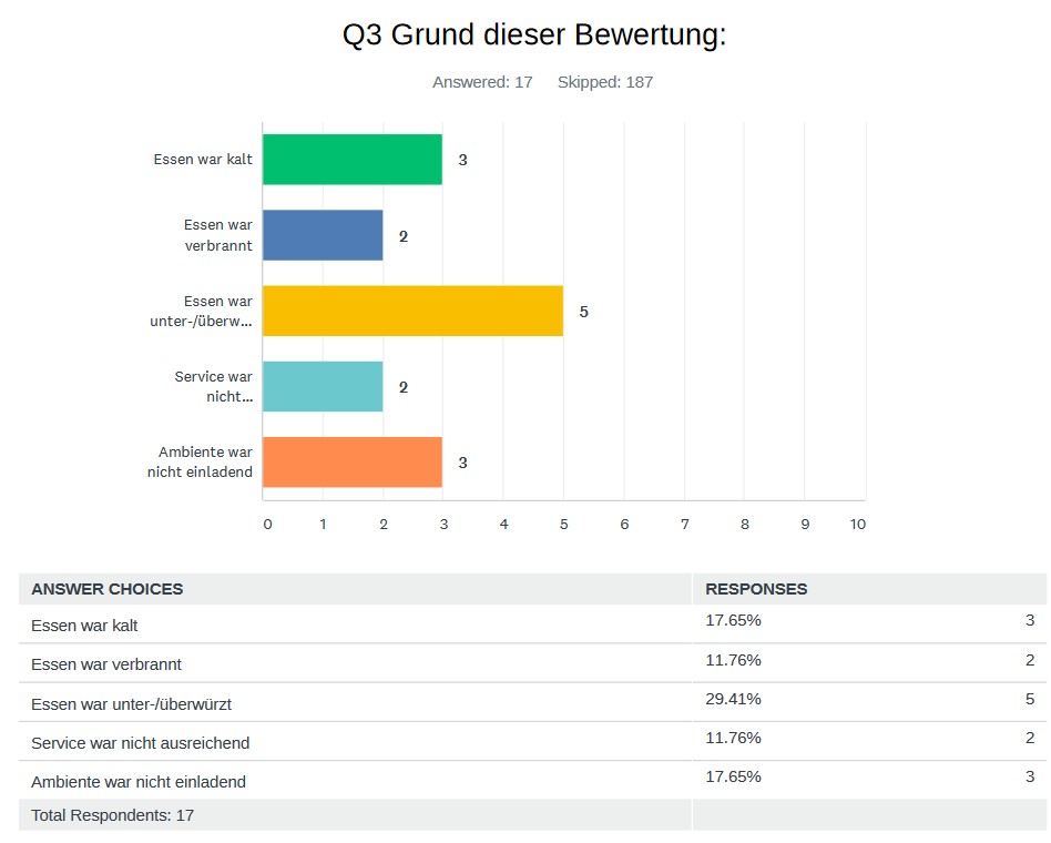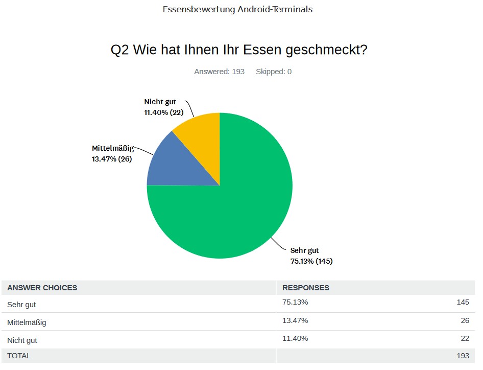 Unter "Weiterlesen" finden Sie die beiden letzten Ergebnisse der Qualitätsbefragungen zum Mittagessen.