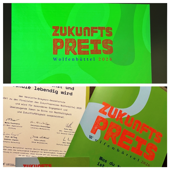 Ein spannender und inspirierender Abend: Beim diesjährigen „Zukunftspreis Wolfenbüttel" war die Henriette-Breymann-Gesamtschule (HBG) gleich mit drei Projekten vertreten – ein großartiger Beweis für das vielfältige Engagement unserer Schule.