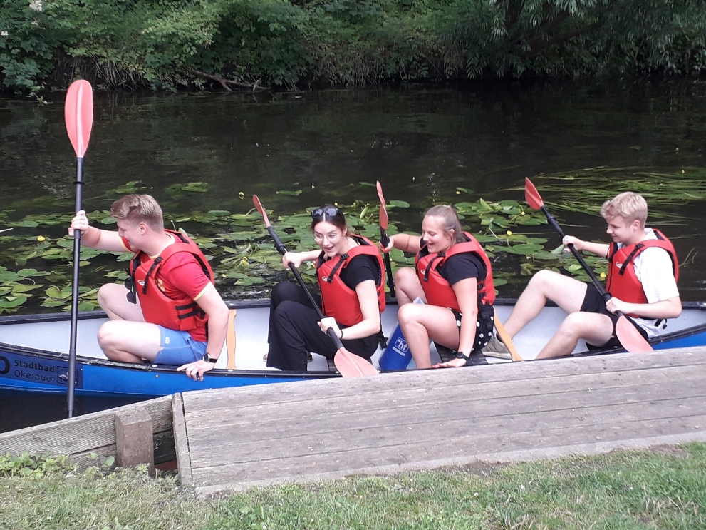 Der Sportkurs Jg. 12 (FIE) nutzte das schöne Wetter um Erfahrungen beim Kanufahren auf der Oker zu sammeln. Mit Strohhut und Malzbier wurde am Stadtbad Okeraue eingestiegen und Richtung Halchter gepaddelt.Mit guter Laune und einigermaßen trocken sind alle nach 1,5 h wieder am Ausgangsort angekommen. Eindeutig zum Nachmachen empfohlen!