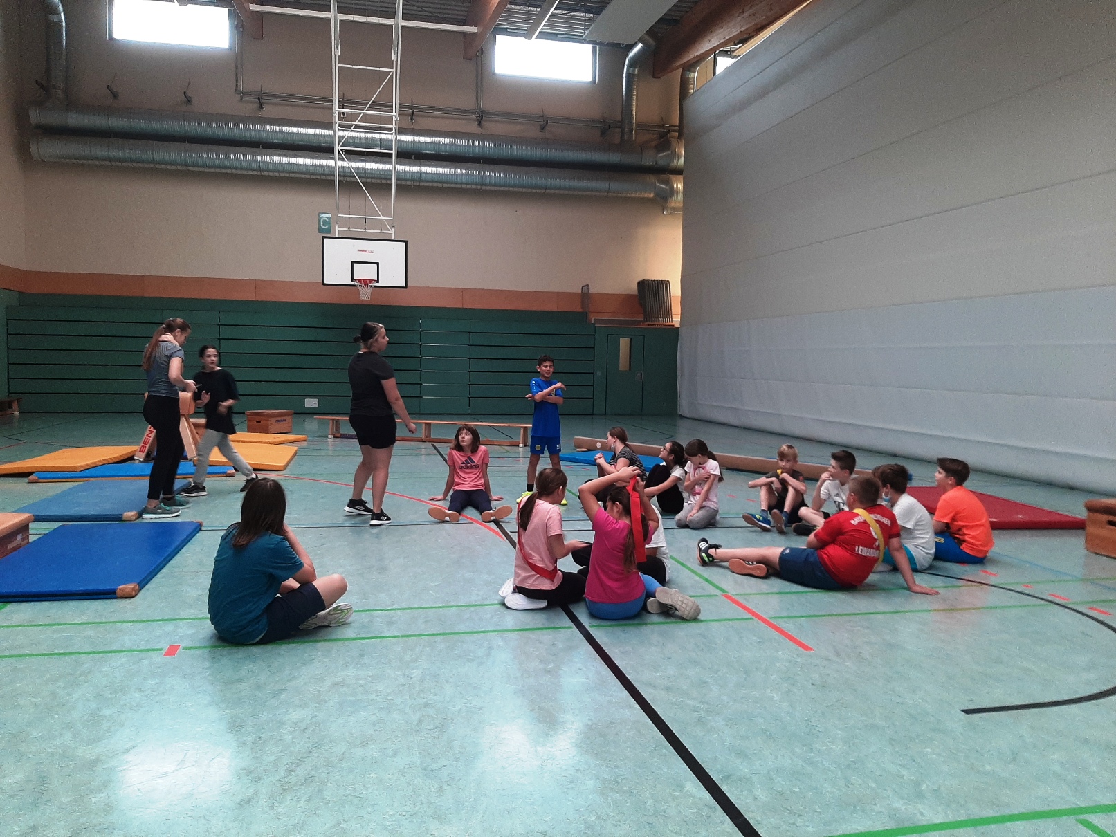 "Wir vom WPK Verantwortung haben viel Spaß mit den 5-Klässlern der Klasse 5.1 gehabt. Die 5-Klässler hatten viel Freude beim Aufwärmspiel „Feuer, Wasser, Blitz“. Danach haben wir die Klasse in zwei Gruppen geteilt. Die eine Hälfte der Klasse hat „Peter Pan“ gespielt und die andere Hälfte spielte „Pirat“. Nach 25 Minuten haben wir getauscht. Die Aktion mit den Fünftklässlern hat uns sehr viel Spaß gemacht, aber es war auch sehr anstrengend und laut."