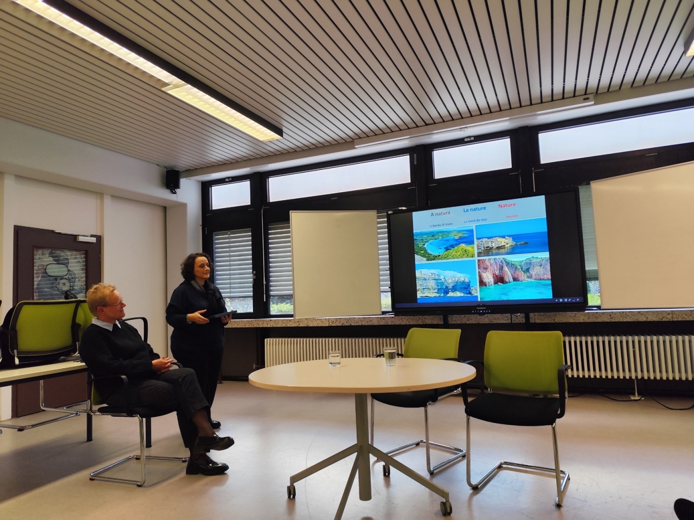 Am Montag stellten die beiden Lehrkräfte einem interessierten Kollegium zudem ihre europäischen Austauschaktivitäten vor. In einem lebendigen Gespräch – auf Französisch, Deutsch und Englisch – erhielten wir Einblicke in Erasmus-Plus-Projekte sowie internationale Kooperationen ihrer Schule, die bis nach Finnland und sogar Grönland reichen.