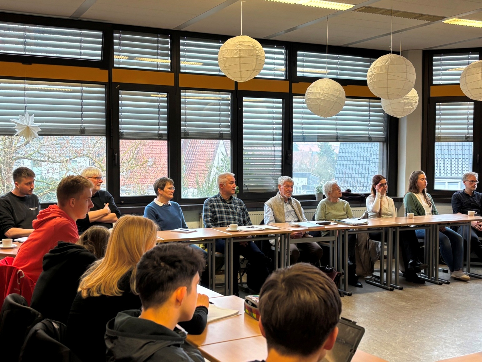 Im Rahmen des Schulprojekts "Less CO₂" arbeiten die Schülerinnen und Schüler des 9. Jahrgangs in dieser Woche intensiv daran, kreative und nachhaltige Lösungen zur Reduzierung des CO₂-Ausstoßes zu entwickeln. Um ihre Projekte auf den Prüfstand zu stellen und weiterzuentwickeln, fand heute eine spannende Gesprächsrunde mit externen Experten statt.