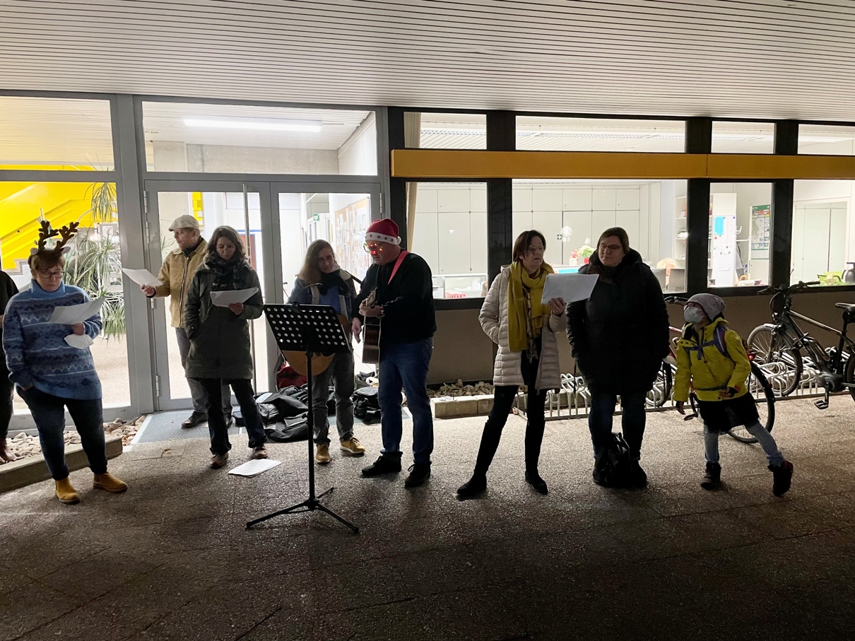 An 4 Tagen in der Adventszeit werden alle ankommenden Schüler:innen ab 7:15 Uhr von unserem Lehrer:innenchor, unterstützt von Schüler:innen des 6. Jahrgangs, musikalisch im Forum begrüßt. Das Mitsingen ist ausdrücklich erlaubt...