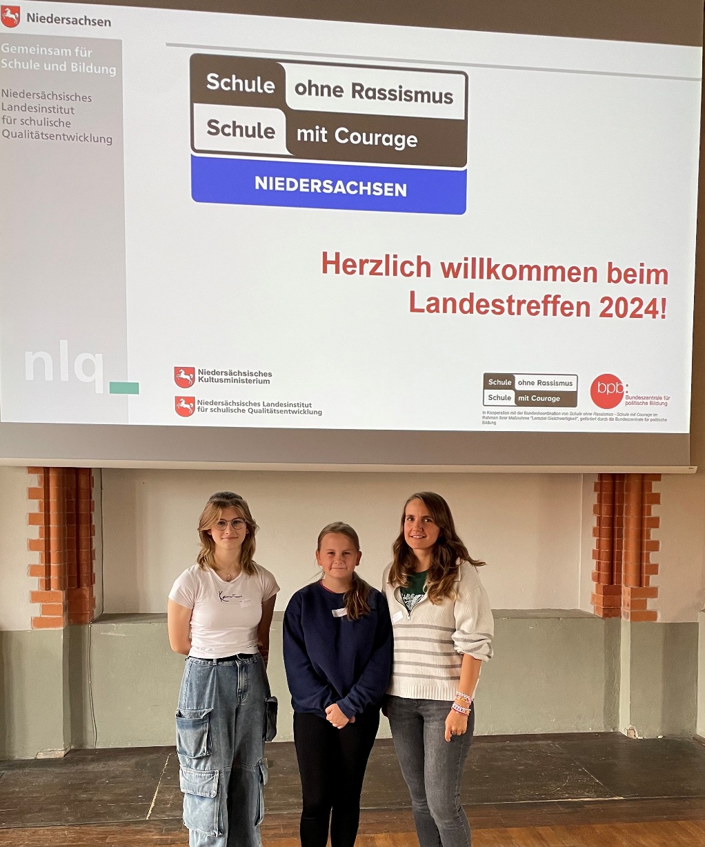 Am 28.09.2024 durften zwei Schülerinnen der Schule ohne Rassismus-Gruppe – Maja (7. Klasse) und Melissa (10. Klasse) – mit Frau Lokaj zum ersten Mal am Landestreffen „Schule ohne Rassismus – Schule mit Courage“ teilnehmen.