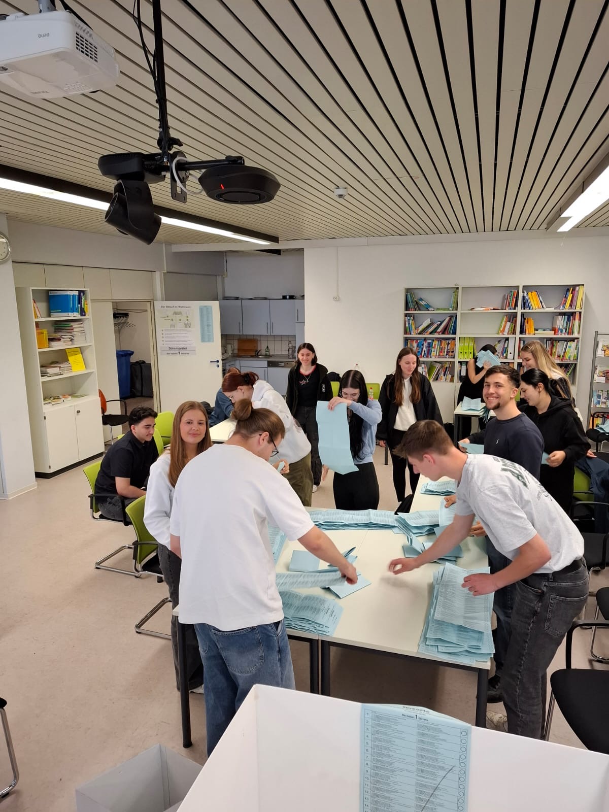 Parallel zur Europawahl fand in der vergangenen Woche die Juniorwahl an der HBG statt. Es handelt sich dabei um eine realitätsnahe Simulation, bei der die Lernenden erste eigene Erfahrungen mit demokratischen Wahlen sammeln können. Vor dem Gang zur Wahlurne wurde das Thema ‚Politik und Wahlen‘ in den Fächern Gesellschaftslehre bzw. Politik ausführlich im Unterricht thematisiert.