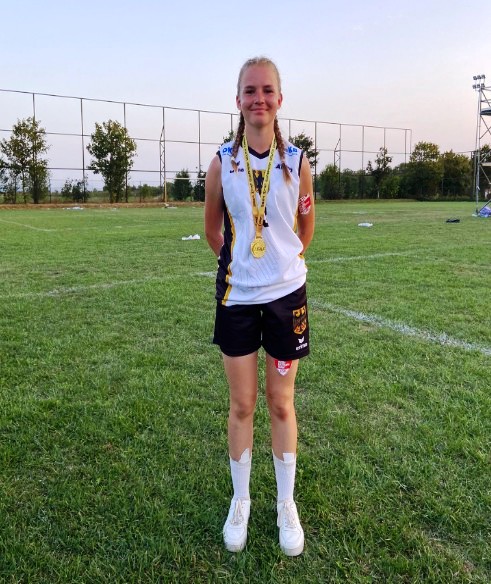 Dies sollte sich für Lina aber auszahlen und sie erreichte einen der Plätze für den Finalen Kader der Nationalmannschaft, welcher dann nach Serbien ( Belgrad ) flog und dort an der diesjährigen Europameisterschaft teilnahm. Gespielt wurde gegen sehr viele Nationen wie z.b. Finnland, Israel, Groß Britannien, Schweiz, Österreich usw. usw. Doch egal welcher Gegner Ihnen auch gegenüber stand auf dem Flag Football Feld, Lina und Ihr Team kämpften sich durch die Hitze von Sieg zu Sieg und schliesslich stand man im Finale der Europameisterschaft !!