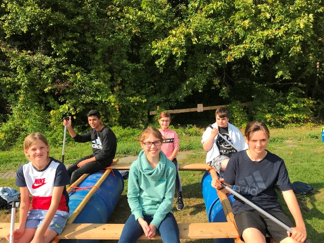 Am 09.09.19 ist der 7. Jahrgang auf eine Klassenfahrt an dem Ruppinersee gefahren. Am Montag sind wir losgefahren und sind nach ca. 2 Stunden Fahrt im Jugend-Dorf angekommen und konnten das Jugend-Dorf erkunden. Dienstag sind wir zum See gegangen und haben aus 6 Bambusrohren 12 Seilen und 4 Tonnen ein Floß gebaut!