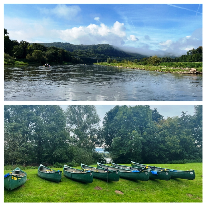 50 km in 3 Tagen! Die Kasse 8.2 hat die Klassenfahrt in Corvey verbracht. Dort waren wir auf der Weser Kanufahren. Nach anfänglicher Skepsis wuchsen wir als Team in den einzelnen Kanus und auch als Truppe zusammen. Es war uns eine riesen Freude. So schafften wir 6, 20 und am letzten Tag sogar 24km. Ob wir bald wieder eine Tour machen können? Es wäre unser Wunsch und dann schaffen wir sicherlich noch mehr, dann unsere Arme gehen gestärkt hervor. Nicht unbemerkt wollen wir die beeindruckende Weser- Landschaft lassen. Natur pur!
