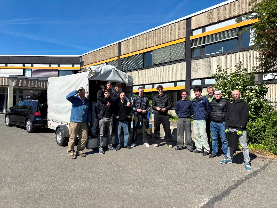 Mit viel Engagement machten sich heute einige Eltern, Kolleginnen und Kollegen sowie neun Schüler der 12. Jahrgangsstufe daran, gespendete Büromöbel von Isingerode zur HBG zu bringen.
