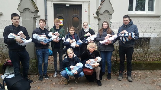 12 Schüler der HBG nahmen im Rahmen des WPK Soziales Lernen an einem Elternpraktikum mit Babysimulatoren teil. Das Projekt lief vom 16.01.- 20.01. Bei der Abholung der Babysimulatoren beim Sozialdienst katholischer Frauen (SkF) in Braunschweig wurde den Schülern die Versorgung der Babysimulatoren erklärt. So möchten sie entweder das Fläschchen, eine frische Windel, ein Bäuerchen machen bzw. einfach nur im Arm geschaukelt werden. Um den Simulator mit einer dieser Pflegemaßnahmen versorgen zu können, musste man zur Erkennung mit einer sogenannten ID über den Bauch des Simulators streichen. Bei dem Projekt gab es auch Pärchen, die zusammenarbeiteten, das heißt, dass es zwei IDs gab, eine Haupt ID und eine Babysitter ID. Zu Beginn wurde jeder Simulator mit unterschiedlichen Tagesabläufen programmiert. Jeder dachte sich einen Namen für das Kind aus, suchte sich entsprechende Babykleidung und bekam zum Transport einen tragbaren Babyautositz. Dienstag und Donnerstag kamen die Mitarbeiterinnen des SkF, eine Diplompsychologin und eine Sozialpädagogin, in den WPK-Unterricht um mit den Schülern verschiedene Themen zu erarbeiten, wie z,.B. Lebensplanung und Kinderwunsch, Alkohol und Rauchen während der Schwangerschaft, Kindersicherheit, Traumeltern, kindersicheres Umfeld, partnerschaftliches Verhalten, Kindererziehung etc.