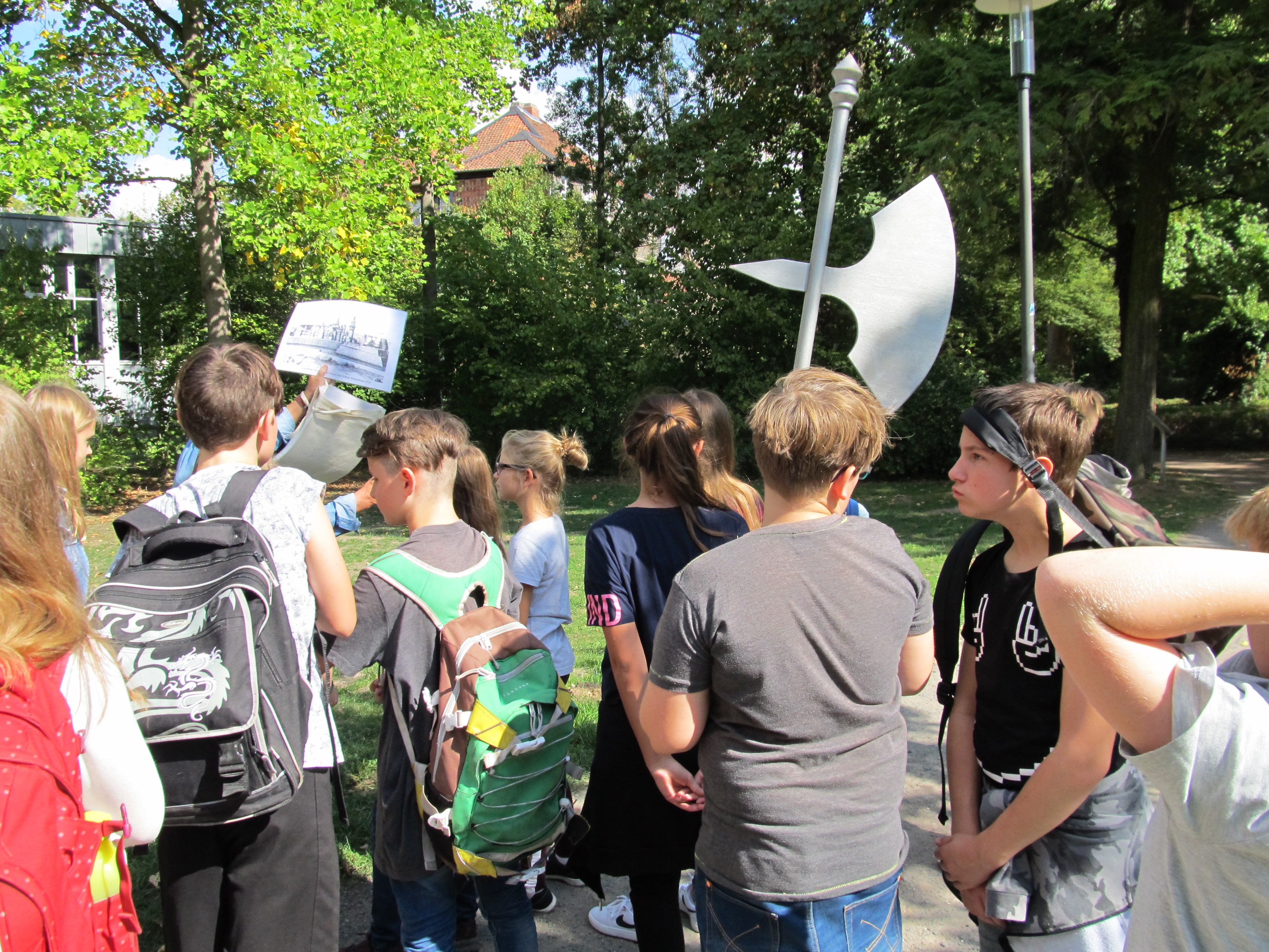 Die Schüler des Geschichts-KUS besichtigten am 12. September die Kasematten im Seeliger-Park und lernten, dass diese unterirdischen und schusssicheren Gewölbe zur Bastion “Lindenberg” gehörten, die wiederum ein Teil von den umfangreichen Festungsanlagen in Wolfenbüttel war. Als die Kasematte freigelegt wurde, fand man mehr als 4000 Kanonenkugeln, darunter auch Kugeln mit dem Monogramm des Herzogs. Die Kasematten wurden ab ca. 1570 gebaut, nachdem die alte Residenz und ihre Festungsanlage durch die Truppen des Schmalkaldischen Bundes 1542 zerstört wurden. Herzog Heinrich Julius stellte 1589 zu seinem Schutz Kompanien mit 3000 Soldaten auf, die mit den Befestigungsanlagen aus Wällen, Bastionen und dreistöckigen Kasematten mögliche Belagerer abschrecken sollten.