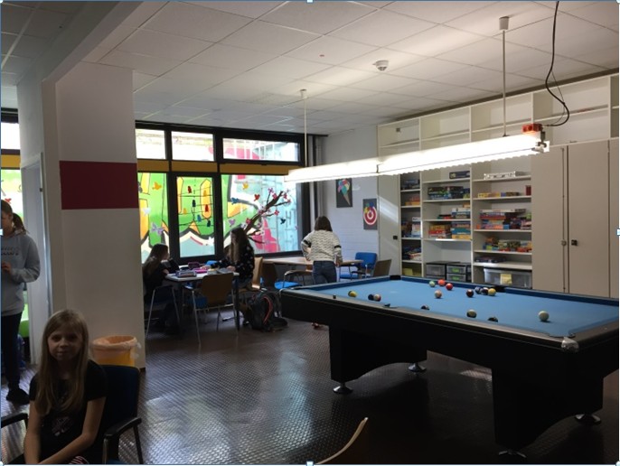 In der HBG gibt es ein Freizeitbüro zum Spielen und Spiele ausleihen. Die Schüler dürfen sich dort in den Pausen aufhalten. Es hat jeden Tag von 7:40-14:50 Uhr geöffnet. Während des Unterrichtes hat es geschlossen. Es können sich zurzeit nur die Jahrgänge 5-7 dort aufhalten, da es in der letzten Zeit zu voll ist. Die Schüler können Sie viele verschiedene Spiele ausleihen, wie zum Beispiel Monopoly, UNO, Billard aber auch Bälle (Fußbälle, Kickerbälle,...). Für die Ausleihung muss man sich einen Ausleihschein kaufen. Dieser kostet 1€. Es gibt auch jedes Jahr FSJler bei uns im Freizeitbüro, die dort aufpassen. Frau Wegner ist die Leiterin des Büros. Nachmittags besteht immer die Möglichkeit dort betreut zu werden. Das Freizeitbüro bietet auch manchmal Turniere an. Zum Beispiel ein Kickerturnier. Wenn Schüler eine Idee haben, was sie für ein Turnier organisieren wollen, können sie die im Freizeitbüro vorstellen.