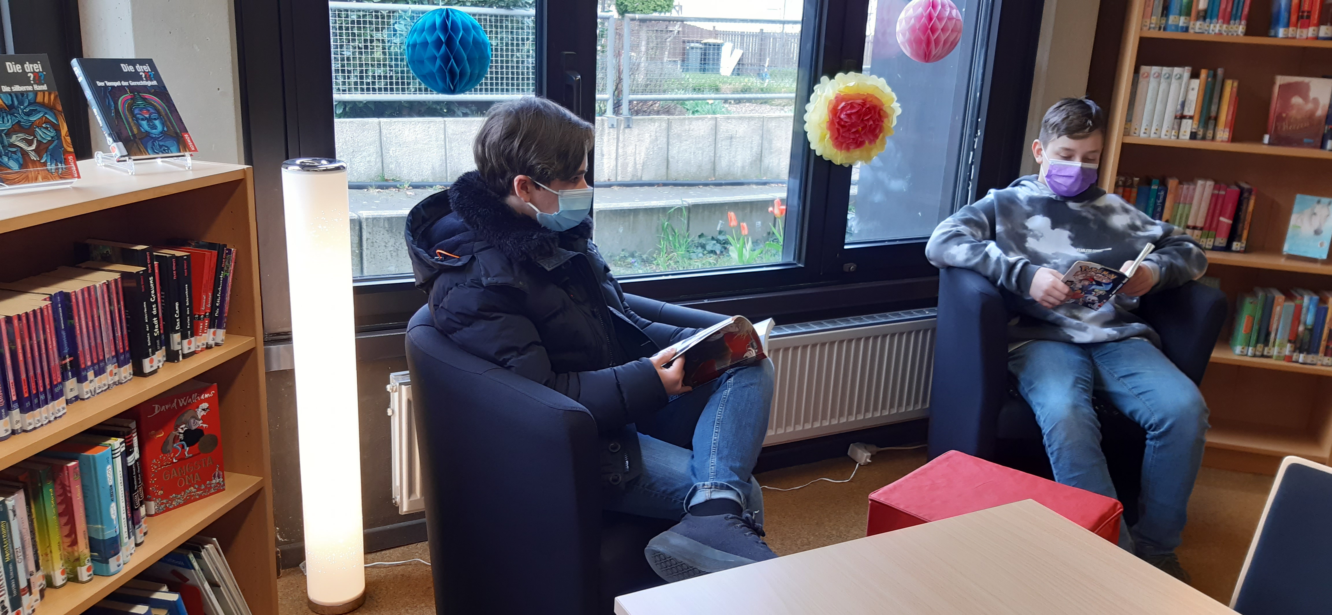 Die Schulbücherei konnte vier neue Stehleuchten anschaffen. Die wurden besonders für die „Hörbuchecke“ gebraucht. Um nämlich mal so richtig abzuschalten und in eine andere Welt oder Zeit einzutauchen, bedarf es einer gemütlichen Atmosphäre.