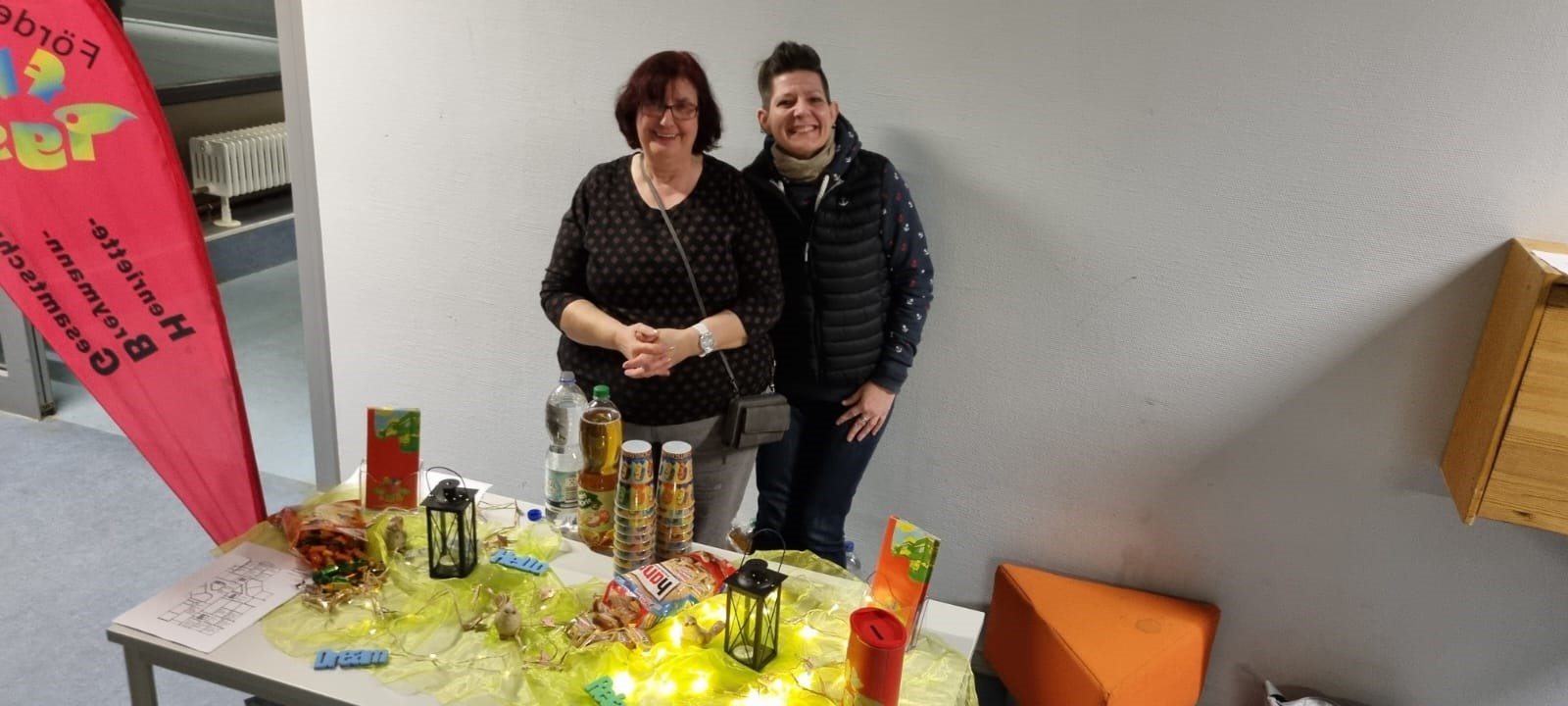 Auch der Förderverein war bei dem Info-Abend für Grundschuleltern vertreten. Marion Drine und Carola Klingsporn-Meier führten viele nette Gespräche.