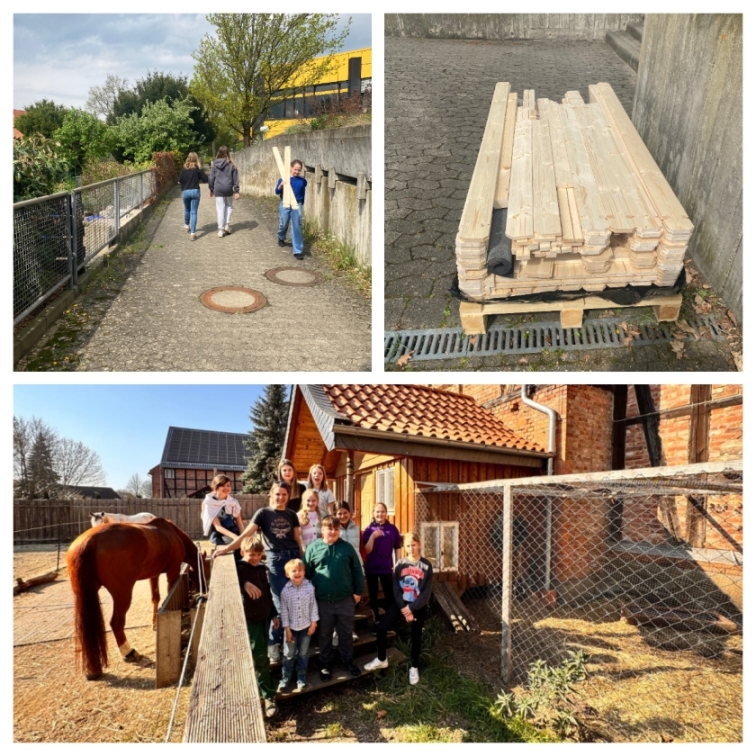 Ein besonderer Dank geht an dieser Stelle an Mira Köhler, die in ihrem privaten Umfeld über 240 Euro gesammelt hat, sodass wir die gesamte Ausstattung, wie Tränken und einen mobilen Auslaufzaun kaufen konnten. Nach den Sommerferien sollen dann die Hühner einziehen. Derzeit sind wir noch auf der Suche nach Namen. Schreibt gerne Frau Malik eine E-Mail, wenn ihr hierfür tolle Ideen habt. Damit ihr auch immer auf dem aktuellen Stand seid, gibt es weiterhin im Forum beim Sekretariat eine Infotafel.