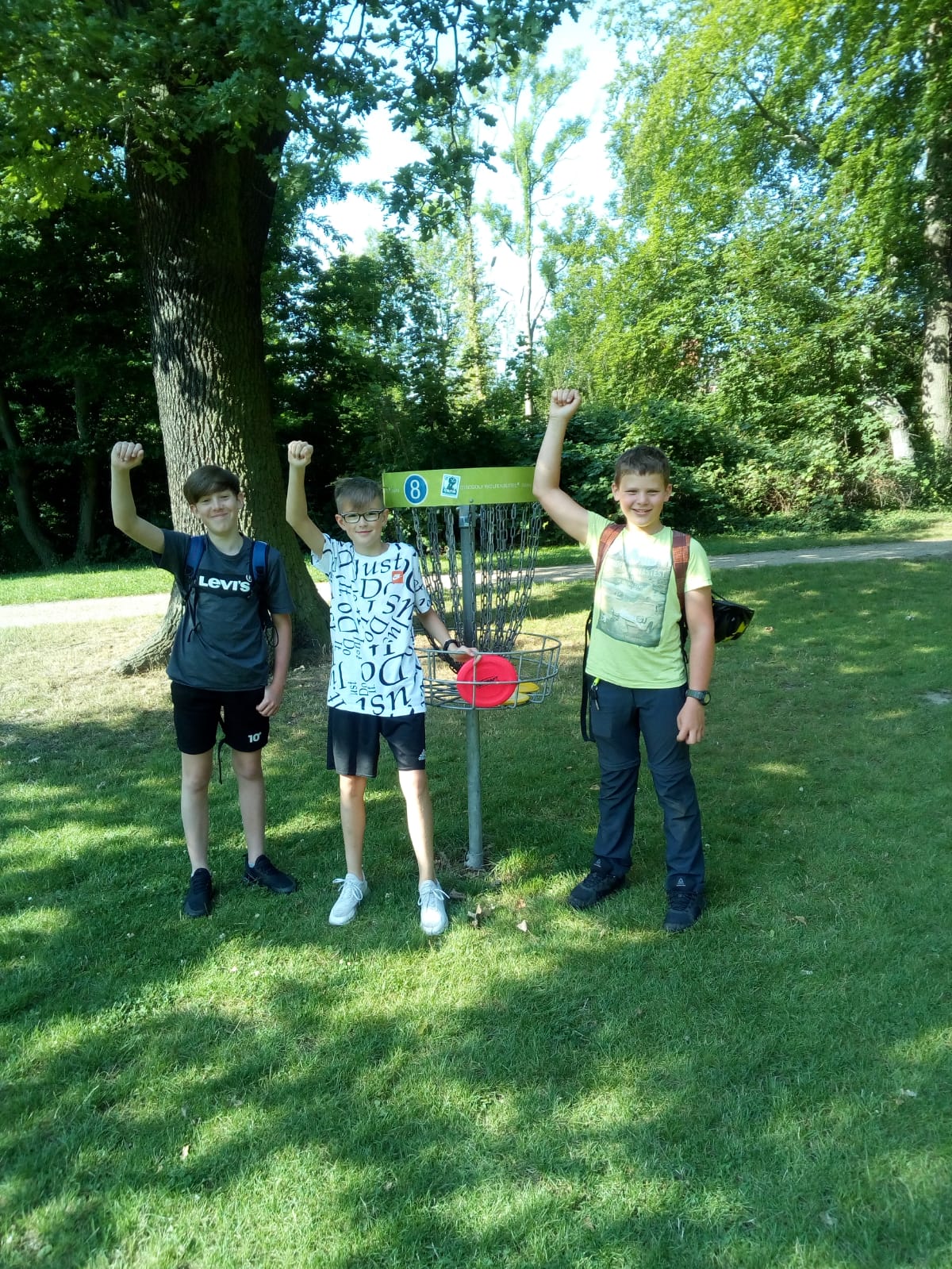 Am letzten Schultag hat die Klasse 6.3 einen sportlichen Ausflug in den Seeliger Park unternommen, um dort Discgolf zu spielen. Mit den Scheiben der Schule wurde der 9-Bahnen-Parcours bespielt und einige Erfahrungen mit den fliegenden Scheiben gesammelt. Großer Freude kam besonders auf, weil sich auch das Wetter von seiner besten Seite zeigte. Die Schüler hatten so viel Spaß dabei, dass einige sogar in ihren Ferien spielen wollen. In einem Nachgespräch erzählte eine Schülerin: "Ich möchte mit meiner Familie mal in dem Seeliger Park Discgolf spielen gehen". Wie schön! Anschließend ging es zurück zur HBG und die LEBs wurden ausgeteilt und besprochen...