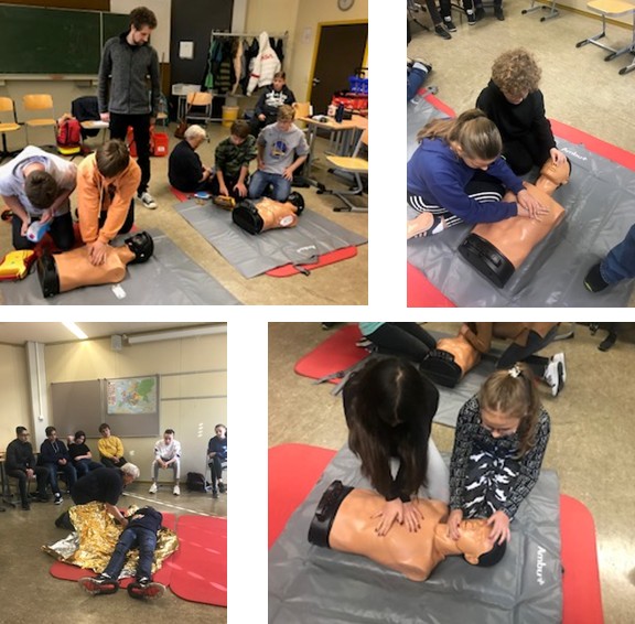 Am 28.10. und am 04.11. bekamen die SchülerInnen des KUS „Schulsanitäter“ ihren ersten Lehrgang in diesem Schuljahr. Im Rahmen dieses KUS - unter der Leitung von Katharina Fay - werden interessierte Schülerinnen und Schüler mit spannenden Lehrgängen an die Erste Hilfe herangeführt und so für ihre Schule zu Schulsanitätern ausgebildet. In diesem Jahr nehmen 21 Schüler und Schülerinnen teil, 4 von Ihnen sind schon länger dabei. Dieser KUS für SchülerInnen der Jahrgänge 7-9 läuft schon seit mehr als 5 Jahren an der HBG. Viele Kinder haben sich für diesen KUS aufgrund eigener Erfahrungen, die sie mit den Sanitätern hatten, entschieden, oder weil sie sich später beruflich in die Richtung Feuerwehr und Sanitäter orientieren wollen.