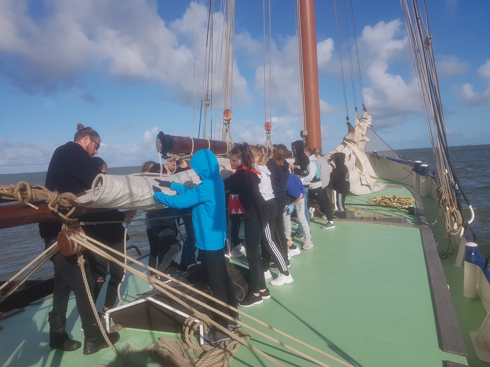 Die Klasse hat dabei viel Spaß gehabt und super zusammengearbeitet, sei es beim Segeln auf Deck oder unter Deck beim Zubereiten des Essens und beim Reinigen des Schiffs. Es war sehr schön zu sehen, wieviel Freude die Klasse hatte und wie gut die Klassengemeinschaft in diesen 5 Tagen zusammengewachsen ist. Der Segeltörn hat sich für uns alle sehr gelohnt und etliche Schüler sagten bereits, dass sie solch eine Fahrt sehr gern wiederholen würden.
