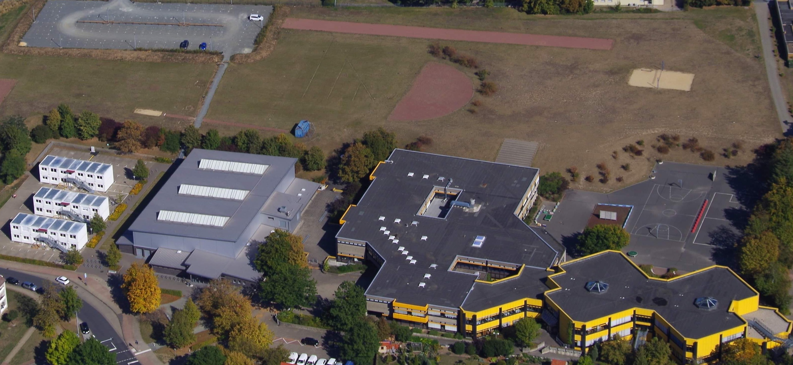 Malte aus dem 12. Jahrgang hat unsere Schule am Samstag bei bestem Spätsommerwetter aus der Vogelperspektive fotografiert. Dies ermöglicht der Schulgemeinschaft diesen interessanten Blick auf unsere Schule mit den Containern der Oberstufe. Herzlichen Dank dafür.
