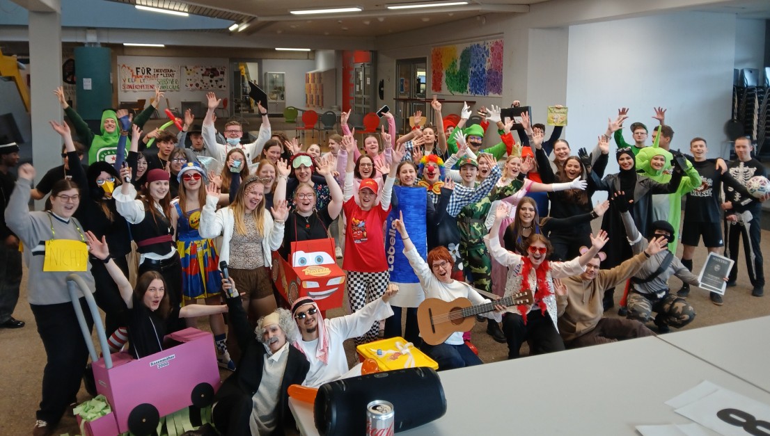 Für große Begeisterung in der Schulgemeinschaft sorgen in dieser Woche die täglichen Laufsteg-Auftritte unserer Schüler:innen des 13. Jahrgangs. Vor den anstrengenden Abitur-Wochen genießen die Schüler:innen sichtlich diese farbenfrohen Tage.