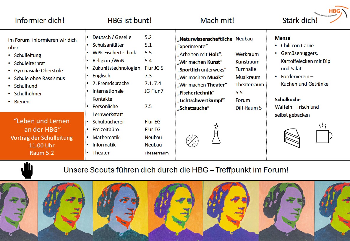 Am 07. März öffnete die HBG ihre Türen für interessierte Familien – und der Tag war ein voller Erfolg. Über 250 Familien nutzten die Gelegenheit, unsere Schule kennenzulernen, Einblicke in den Schulalltag zu gewinnen und gemeinsam einen abwechslungsreichen Vormittag zu erleben.