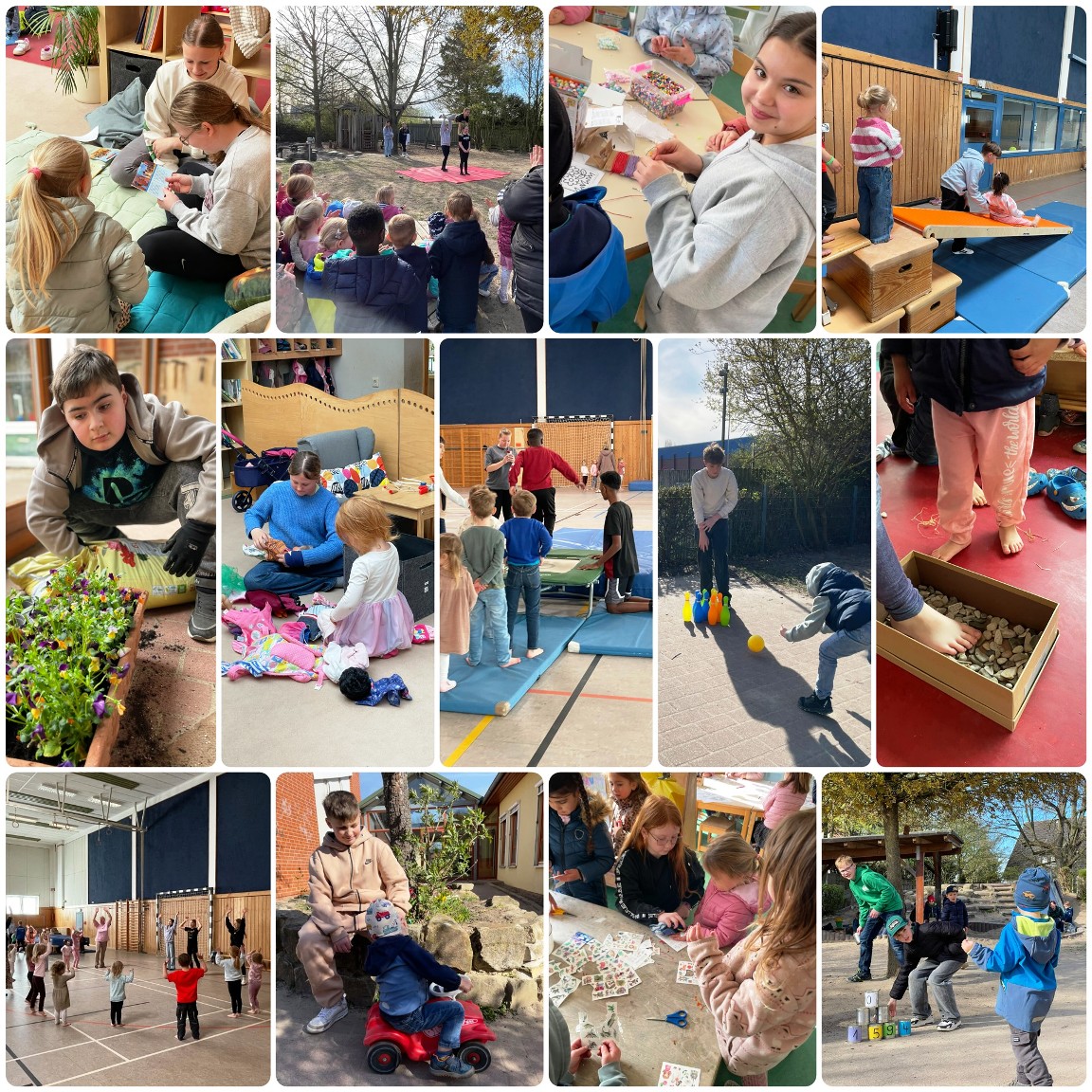 Mit viel Engagement, Kreativität und vor allem großer Herzlichkeit hatten die Sechstklässlerinnen und Sechstklässler im Vorfeld zahlreiche Angebote vorbereitet. Ob beim Basteln von Bügelbildern und Perlenketten, beim fröhlichen Dosenwerfen und Bobbycar-Parcours im Außengelände, einer kleinen Schatzsuche im Sand oder beim Bewegungsparcours in der Sporthalle – überall war spürbar, wie liebevoll und zugewandt die Kinder der 6.1 auf die jüngeren Kita-Kinder eingingen.